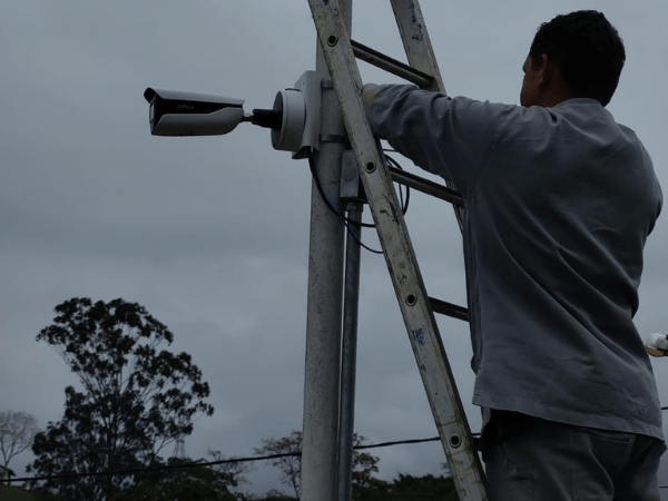 Sistema de segurança na portaria, com câmeras de leitura de placas de veículos ( LPR), e passagem de pedestres por dentro da guarita com reconhecimento facial para todos os visitantes cadastrados.