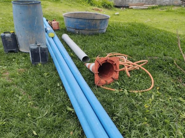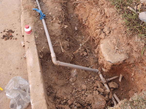 A construção da estação de tratamento da água do poço (ETA), já em fase final de legalização, para utilização da água.
