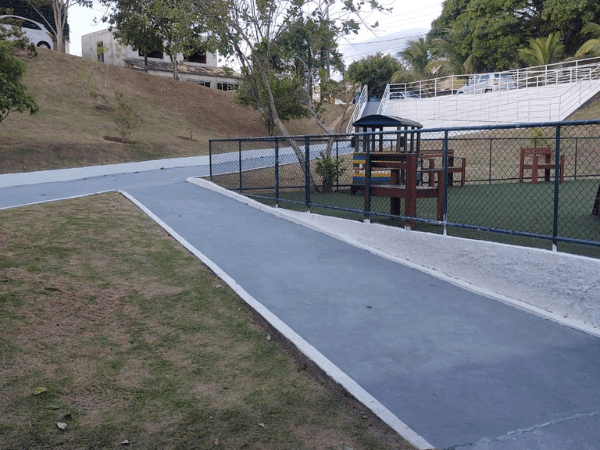 A construção do campo de futebol na área de lazer, em um ambiente muito mais confortável, seguro e confiável para uso de todas as idades